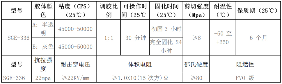 SGE-336 耐 250 度高温环氧 AB 胶符合国际环保标准,已通过欧盟 ROHS 标准和 SGS 检测,是引进先进的工艺技术及进口原材料配制而成的双组份环氧树脂胶粘剂;耐火、耐油、耐水、耐酸碱、耐磨、 防腐性良好,超强粘接等优越性能;常温固化,可长时间耐低温-60℃高温 180℃至 250℃,瞬间可耐高温 250℃ 以上,阻燃级别达到国标 VO。